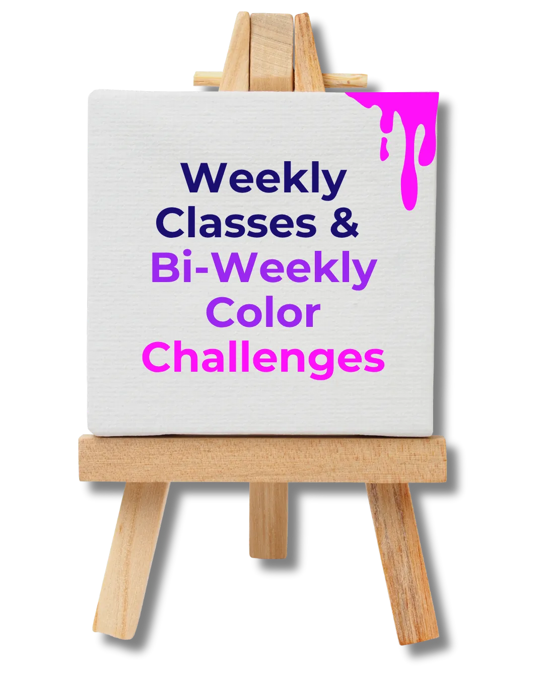 Take on monthly color challenges using just five base paints (red, yellow, blue, white, black) and learn to create stunning custom palettes — no extra supplies needed.