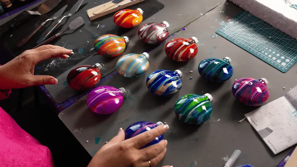 Christmas decorations with fluid art.